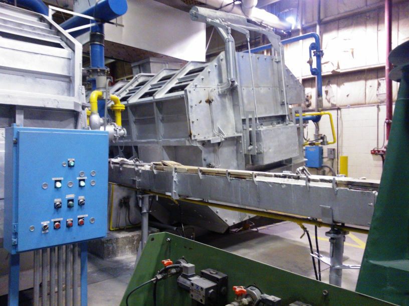 Sección de fusión y colada continua en planta de fabricación de pastillas de alu